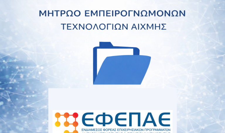 Ο ΕΦΕΠΑΕ ανακοινώνει τη δημιουργία «Μητρώου Εμπειρογνωμόνων Τεχνολογιών Αιχμής» και προσκαλεί κάθε ενδιαφερόμενο να υποβάλει αίτηση εγγραφής, με βάση τα οριζόμενα στην παρούσα Πρόσκληση. Στόχος είναι ο σχηματισμός ενός ...