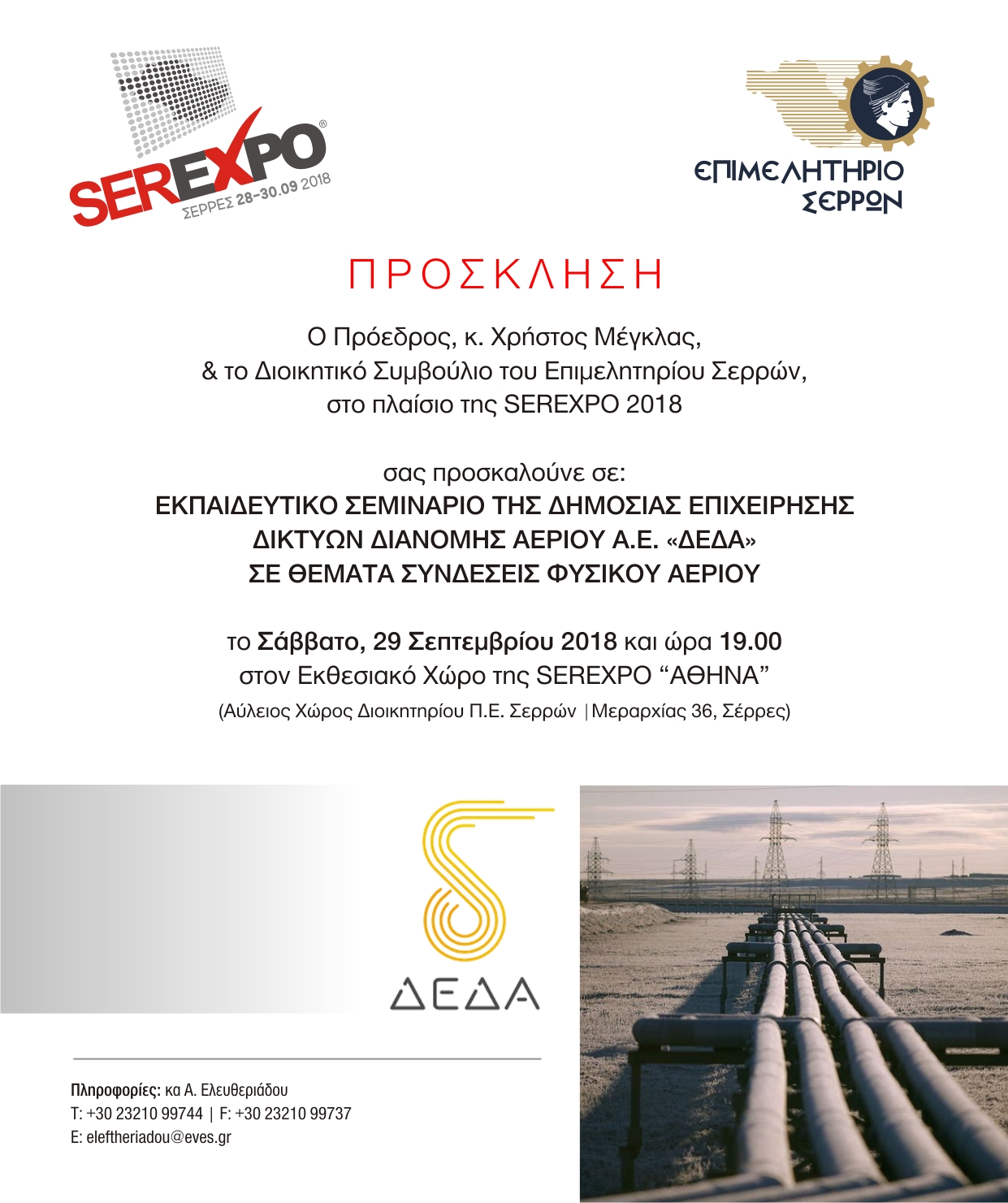 Το Επιμελητήριο Σερρών & η Δημόσια Επιχείρηση Δικτύων Διανομής αερίου Α.Ε. «ΔΕΔΑ» διοργανώνουν Εκπαιδευτικό Σεμινάριο σε